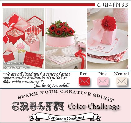 CR84FN is a fun color challenge dedicated to providing creative inspiration for all, no matter your what skill level or style! Each week, hopefully, we will present a fabulous color combination to spark your creative talents! Any type of project (card, layout, 3D project, etc.) is welcomed! Our talented design team will offer inspiring samples to help motivate you. Each week, the design team will vote on a Terrific Top 3 and you will receive a badge that you can display, prominently, on your blog! Starting February 1st, 2011, once a month, the design team will choose a lucky designer to join our team as a Guest Designer for one month! Periodically, CR84FN will also offer giveaways to lucky players! What fun!
