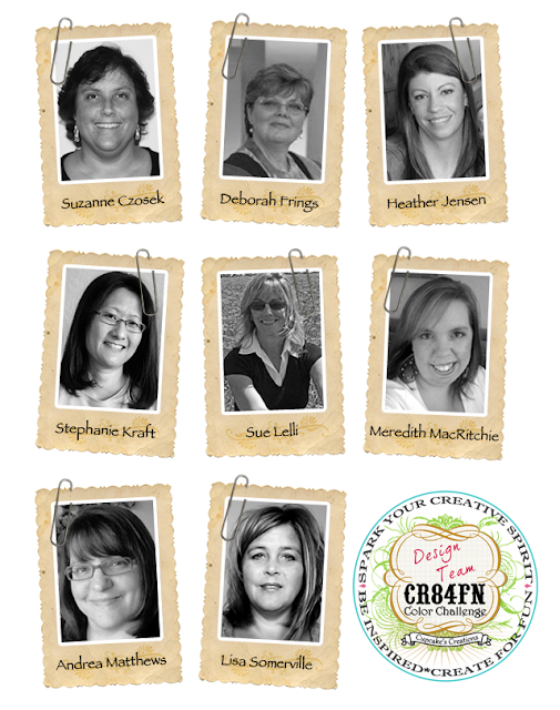CR84FN is a fun color challenge dedicated to providing creative inspiration for all, no matter your what skill level or style! Each week we will present a fabulous color combination to spark your creative talents! Any type of project (card, layout, 3D project, etc.) is welcomed! Our talented design team will offer inspiring samples to help motivate you. Each week, the design team will vote on a Terrific Top 3 and you will receive a badge that you can display, prominently, on your blog! Starting February 1st, 2011, once a month, the design team will choose a lucky designer to join our team as a Guest Designer for one month! Periodically, CR84FN will also offer giveaways to lucky players! What fun!